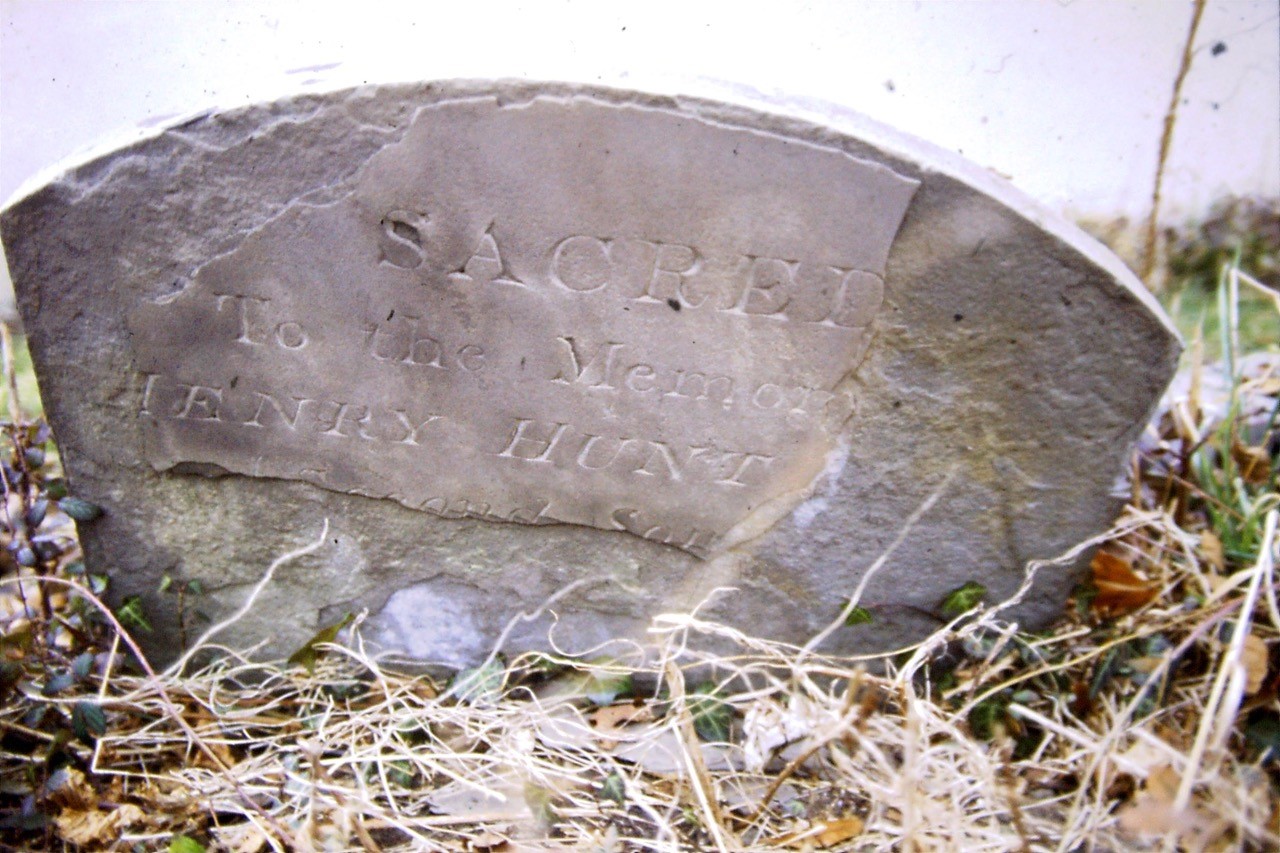 Richard and his friend Derek had come so close to finding the grave. Calling at the vicarage to say goodbye to Canon Wilson, they found him clutching a small notebook. He explained that in 1946 a church warden had recorded all the names from the stones and had even drawn a location plan. He had looked through the note book, but could not find a John Frost. However, there was a Henry Hunt Frost. Richard knew that he was the son of John Frost named after the famous orator at the Peterloo Massacre. On the north eastern side of the church close to the boundary wall, they found a small stone that looked as if it was sinking into the ground. All that was readable was the following, “Sacred to the memory of Henry Hunt…” Feeling around in the grass Richard found the bits of flaked stone that revealed the word “Frost”.